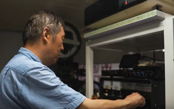 在这个过程中,居民们总能在后场看见一个忙碌的身影:挂片、装片、放片……一套动作娴熟流畅。他就是这家“社区电影院”的“掌舵人”——标营社区居民沈宏,70岁的他被“影迷”们亲切地称为“沈师傅”。