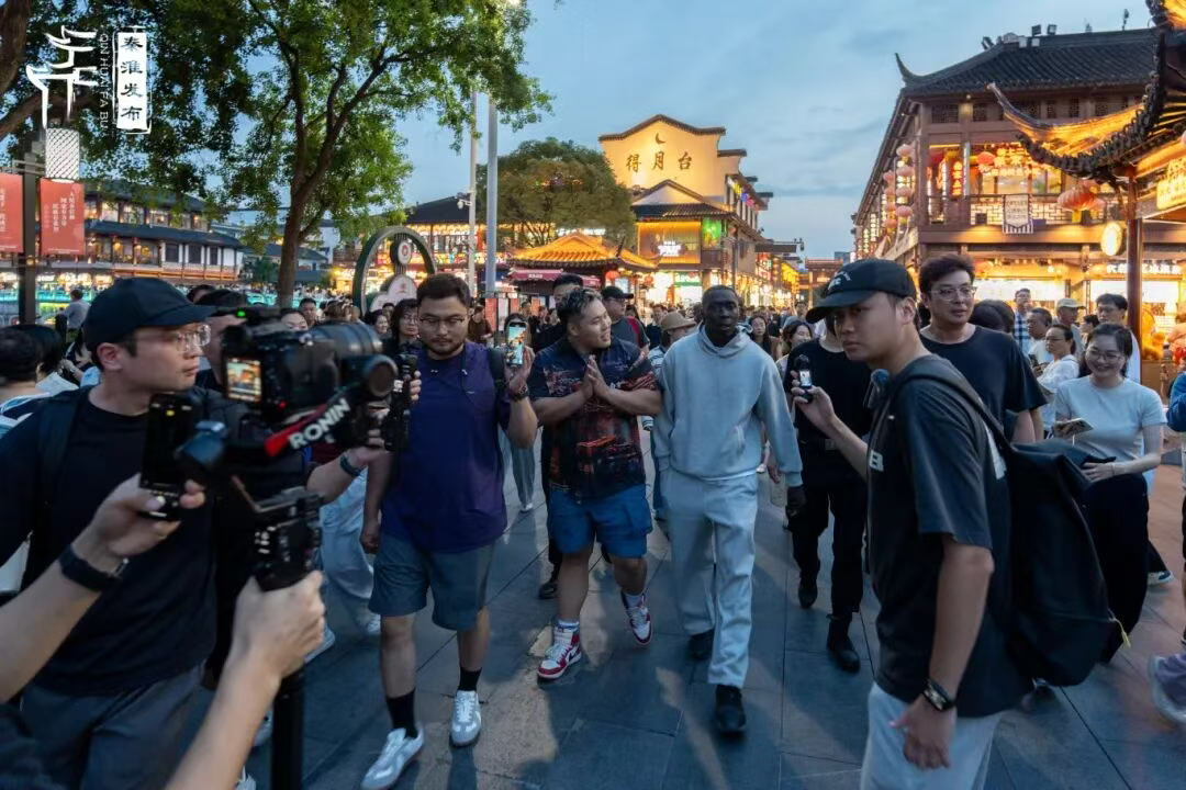 9月11日,“无语哥”Khaby Lame来到南京。傍晚时分他来到夫子庙,与游客热情互动,品尝秦淮小吃、体验秦淮文化。