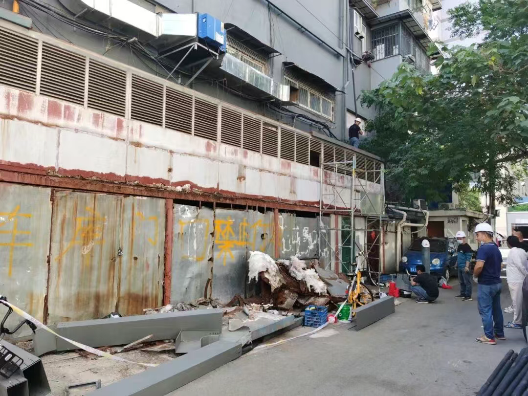 在前期梳理的26项问题中,洪武路95-105号楼的难题最具代表性:一层某商户的空调外机长期困扰楼上居民,运行时的低频噪音夜里穿透墙体,令人难眠,支撑外机的钢架锈蚀严重,用手一碰就掉锈屑,安全隐患突出。而外机下方又被居民私自搭建了非机动车车棚,既挡住了外机检修通道,也让移机改造困难重重。