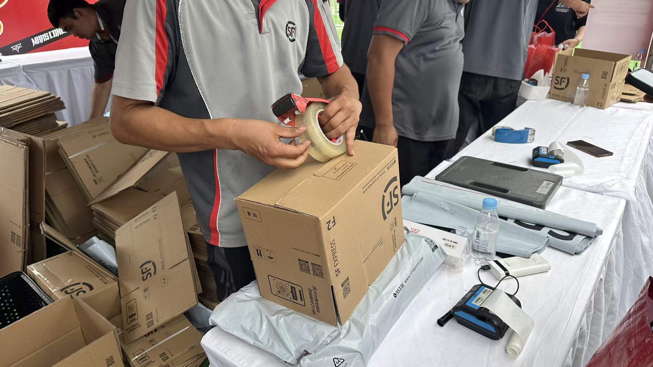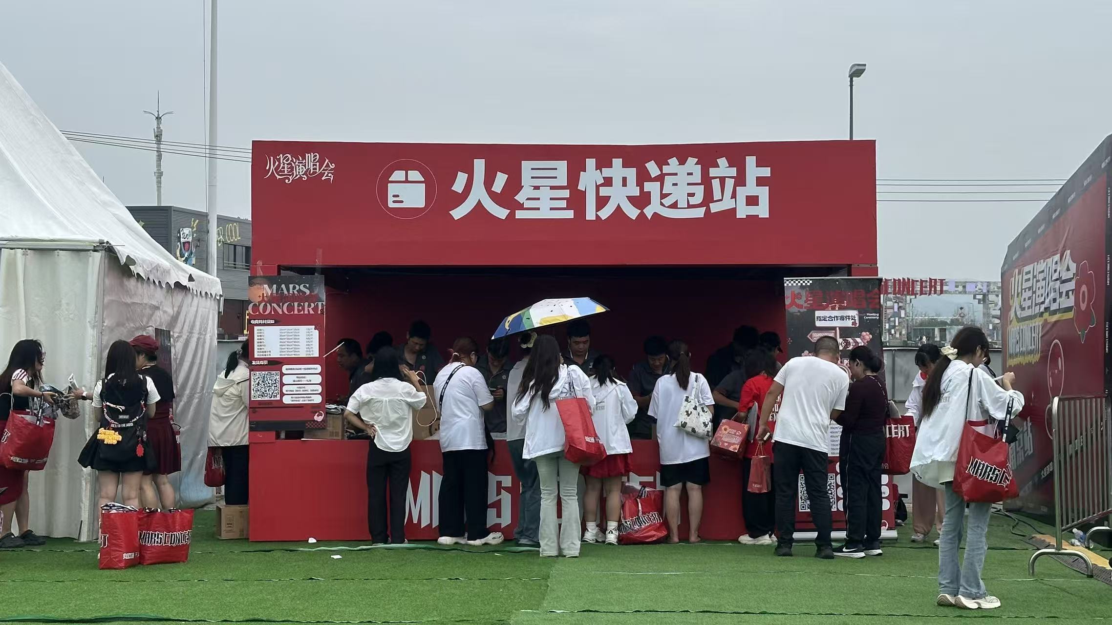 记者在顺丰专项寄递点看到,十几名工作人员分工明确,有人负责引导,有人一边与游客沟通一边手中忙着打包,一套动作下来行云流水。顺丰速运现场工作人员魏星向记者介绍,国庆假期首日,该寄递点的单量已突破800件,预计国庆期间该站点将为1.5万人次的歌迷提供寄递服务,帮助歌迷们将对于偶像的支持与热爱,连同这份“轻松”一起打包,寄往全国各地。