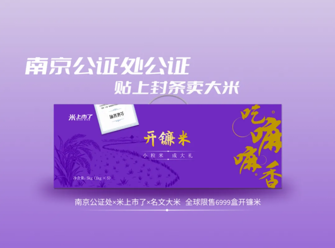 上个月23日,名文大米“开镰米”溯源保全证据公证项目启动。等到11月中旬,水稻收割时,南京公证处的公证人员将对大米收割、烘干、脱粒、封装的全流程进行监督与证据保全,给符合品质要求的每一盒“开镰米”贴上公证封条,消费者可扫描封条上的二维码查看“从田间到餐桌”的全流程作业。据悉,此次“开镰米”限售6999盒,每盒168元。
