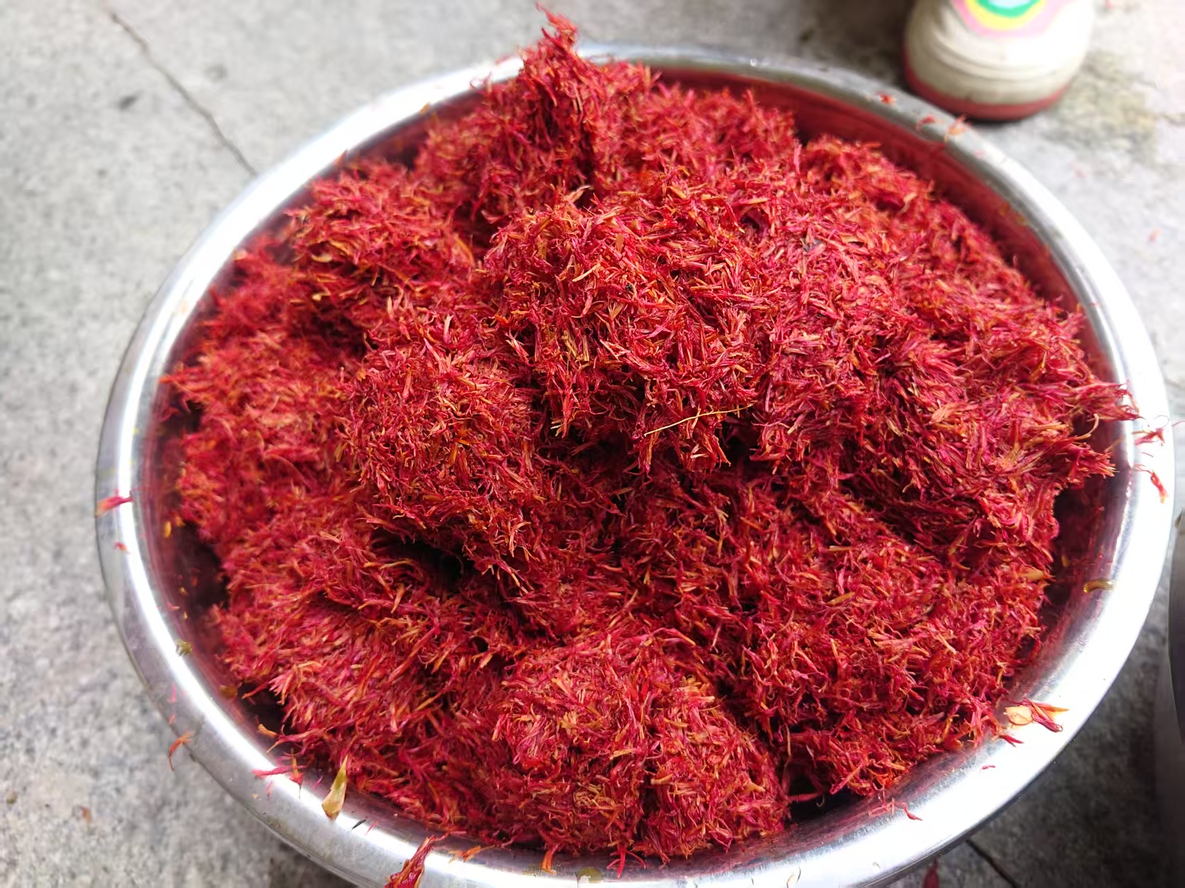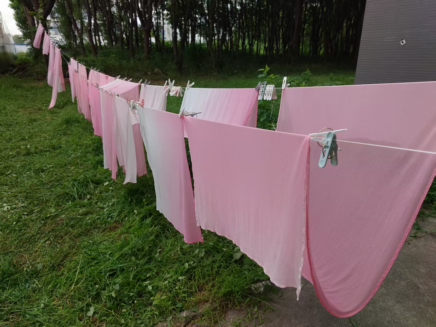染好的丝巾,被逐一系在晾衣绳上,风一吹,红的、黄的、蓝的,在轻轻飘荡,仿佛将四季的色彩都收拢在此处。