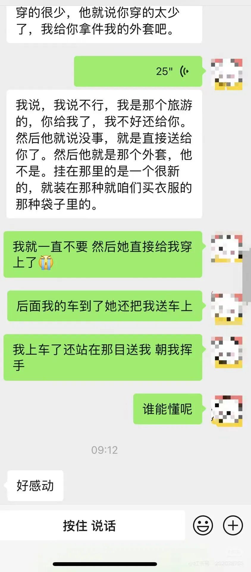 10月14日,她在社交平台上发布了自己遇到的暖心故事,并通过房产中介门店隔壁的螃蟹店老板,与帮助自己的王芳取得联系。沟通中,雒苑婷提出要将外套寄回南京,还表示想寄家乡特产以表感谢,但均被婉拒。王芳说:“就是举手之劳,没必要这么麻烦。”