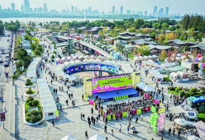 2025年,南京文学书集在玄武湖畔再出发。活动所在地东倚紫金山,西揽玄武湖,本身就是一个诗意所在,更是市民游客在城内休闲娱乐的绝佳之地。为了让文学与城市深度融合,书集设有“文学一公里”展销区,打造了“文创生活方式”“文学露营部落”“低空飞行体验”“苏超足球文学”“萌宠游乐园”等六大主题展区,市民和游客可体验帐篷诵读、房车咖啡、VR沉浸阅读等创新场景,感受文学与体育、电影、科技、文旅的跨界碰撞。
