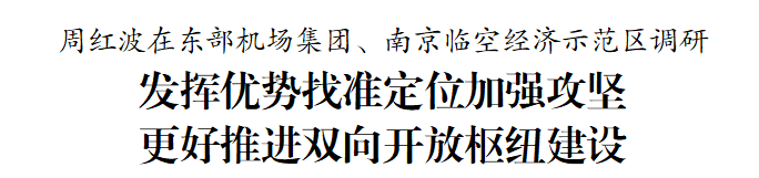 近年来,东部机场集团持续提升南京禄口国际机场货运枢纽保障能力、航线网络质量和国际通达能力,助力江苏推进建设具有世界聚合力的双向开放枢纽。周红波参观集团“苏通世界 飞跃百年”展览,详细了解集团发展历程及禄口机场三期项目规划情况,并与东部机场集团董事长周成益、总经理朱文松及市有关方面负责同志共同会商。他说,禄口机场是南京对外开放的窗口和经济发展的重要引擎,三期项目建设是强化城市全球链接能力的重大工程。市有关方面要与东部机场集团等单位加强沟通协同,加快项目申报和前期工作,持续优化机场空间功能布局,不断完善城市综合交通运输体系。
