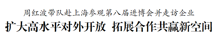 11月5日至6日,市委书记周红波带队赴上海参观第八届中国国际进口博览会,走访参展企业和在沪知名企业。周红波指出,要深入贯彻党的二十届四中全会精神和习近平总书记对江苏工作重要讲话精神,认真落实李强总理主旨演讲要求,按照省委省政府部署,更好发挥进博会窗口作用,持续扩大高水平对外开放,深化经贸交流合作。